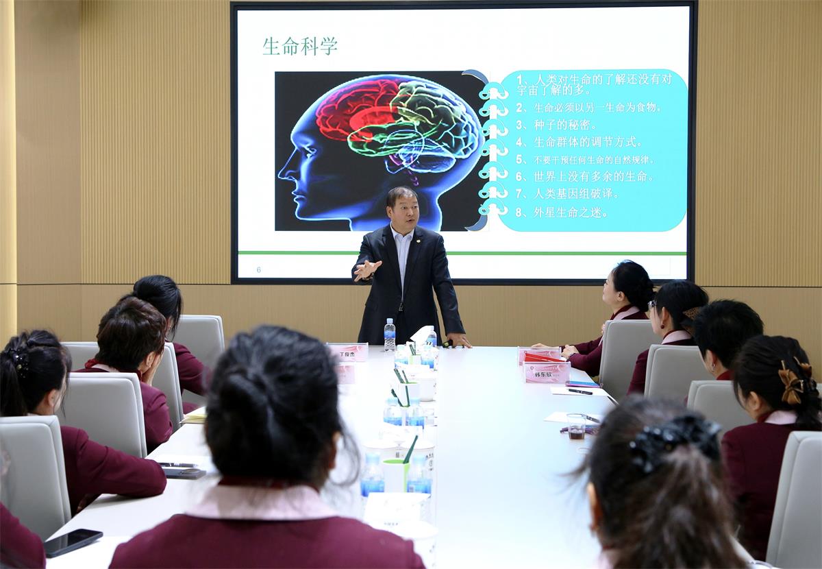 在讲座中,丁俊杰博士以《洞察生命科学的秘密》为题,用独特的视角开启了生命科学的探索之旅。从“硅基生命与碳基生命”的对比切入,引导听众重新思考生命的本质与形态;在探讨食品安全问题时,不仅剖析现状,更从生命科学角度提出全新的安全观照框架;通过对“一维价值至四维价值”体系的深入阐释,为女企业家提供了认知升级的价值评判工具;在“认识生命”环节,以“阴阳平衡”“气血调和”等传统智慧与现代科学相印证,提出“植物属阴、动物属阳”的创新分类理念;更以“物实用虚、物虚用实”的辩证思维,启发大家重新审视物质世界的本质;最后通过对文字符号的深度解读,揭示了语言背后蕴含的生命能量与信息密码